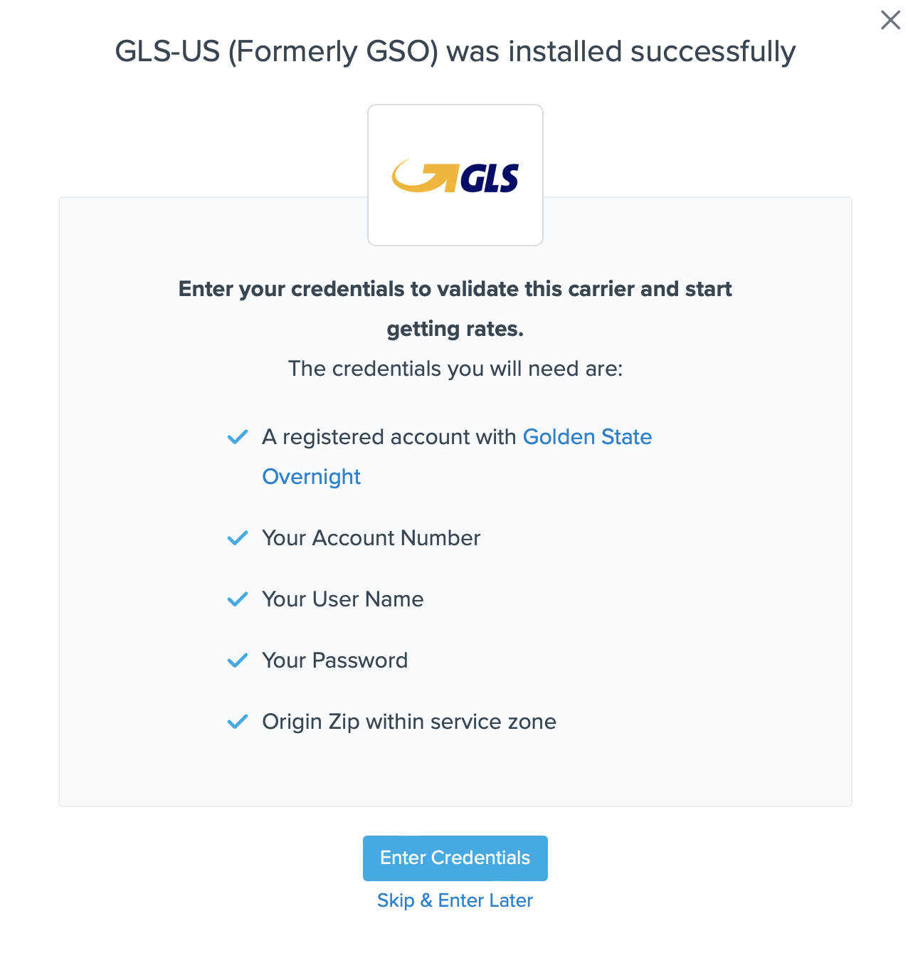 This document outlines how to connect your GLS US (formerly GSO or Golden State Overnight) account to ShipperHQ to obtain live rates.