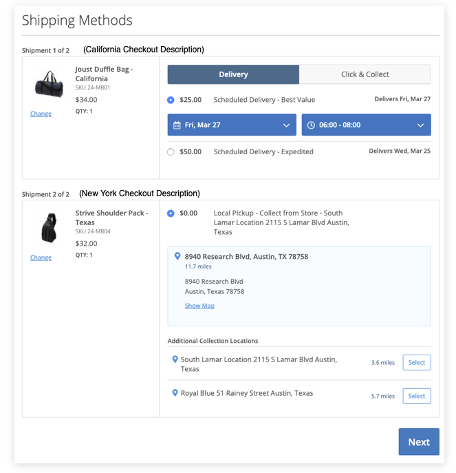 - When testing your shipping rates, you should see a split checkout with separated rates.