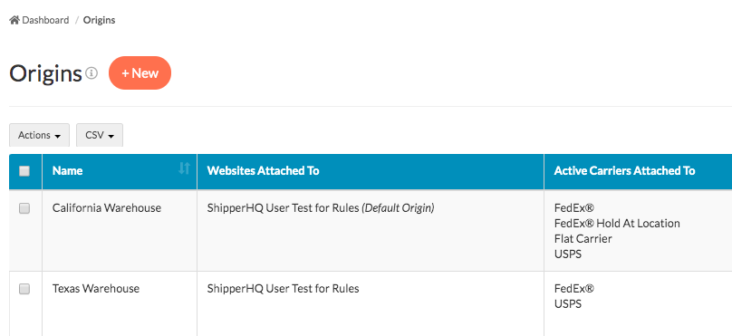 - Navigate to the Origins page and create at least two shipping origins.
