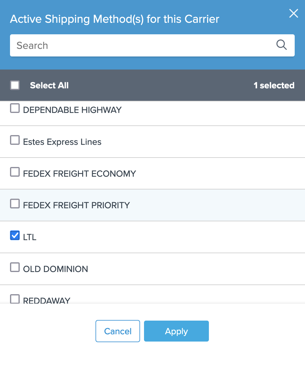 To show specific carriers instead, replace the LTL method with options like: