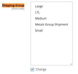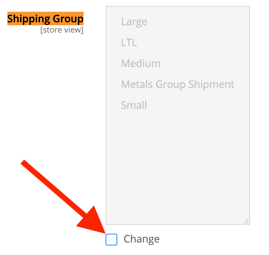 - Find the Shipping Group attribute on the page and click the Change button to edit