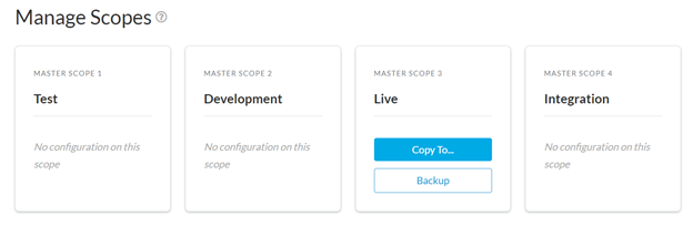 Unless you have Enterprise access to this feature, you must manually transfer information between scopes. Scope Management offers capabilities such as copying, backing up, and restoring configurations between scopes.