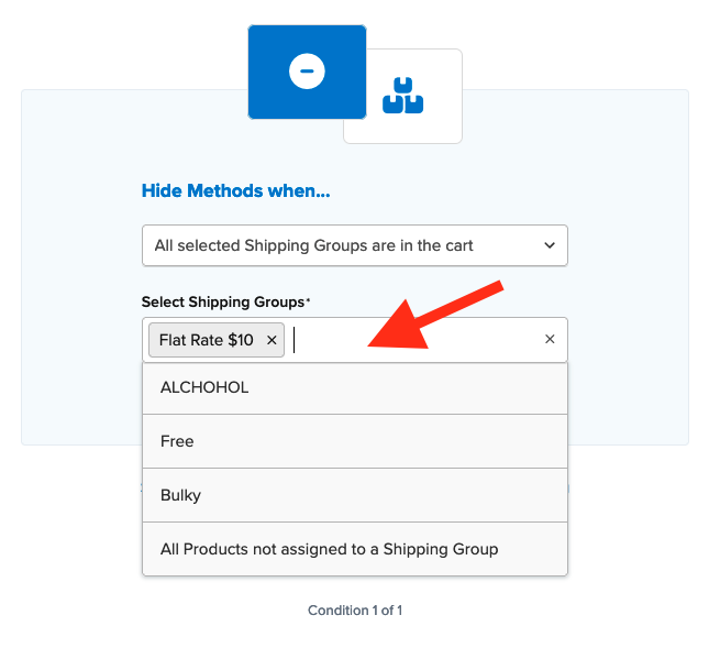 - Choose the shipping group to be used in this rule.
