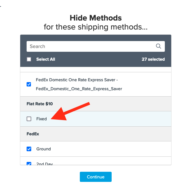 - Select all methods to hide, excluding the Flat Rate option.