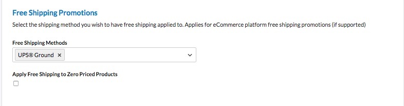 To specify the carriers or shipping methods that will be free with a coupon code, edit the relevant carrier in ShipperHQ. Head to the "Optional" tab to see the Free Shipping Promotions section. Here, you can select the method that the coupon promotion should apply to, such as setting free shipping for UPS Ground.