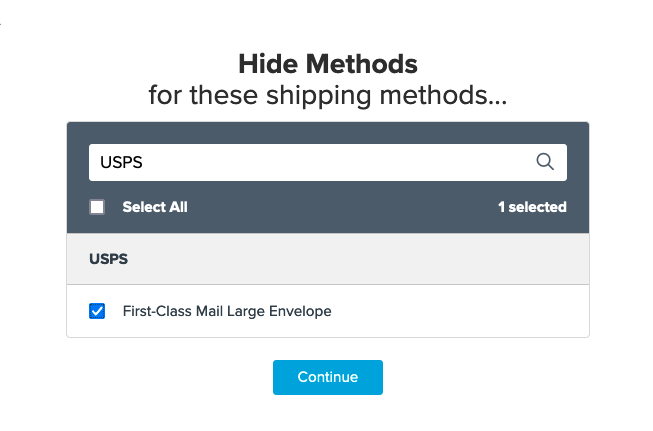 Set shipping rules to hide USPS First-Class for oversized items ineligible for envelope