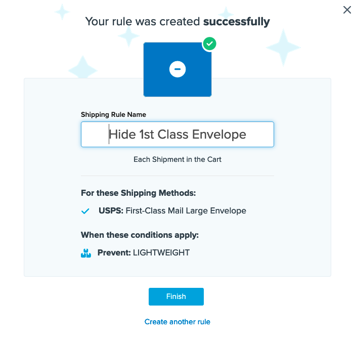 Once completed, the USPS First-Class Envelope will be hidden if the cart does not contain LIGHTWEIGHT items.