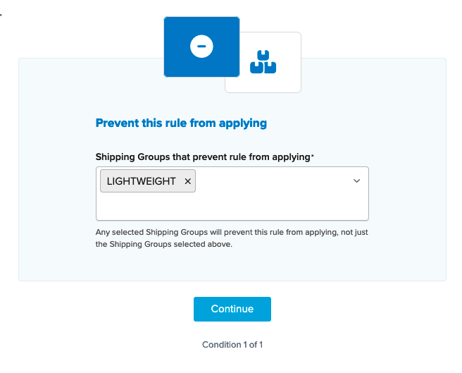 - Click the option titled Select Shipping Groups to Prevent This Rule from Applying.