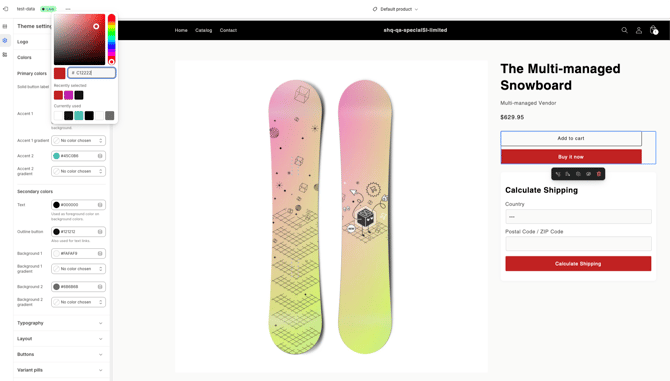 - The Product Page Shipping Calculator button color is customizable using your Shopify store theme settings