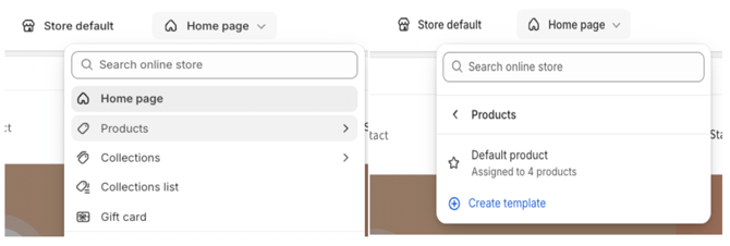 Within the Theme Customization, click on "Home Page" > Products > Default Product.