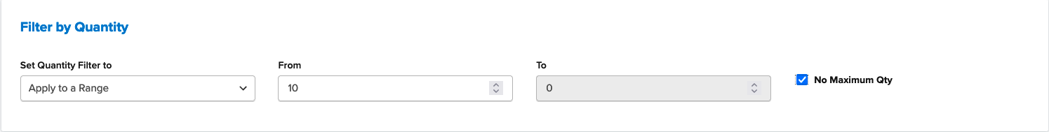 - Set a Quantity Range of 10 with no Maximum Quantity.