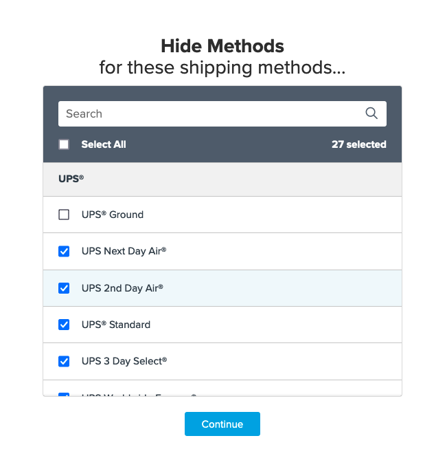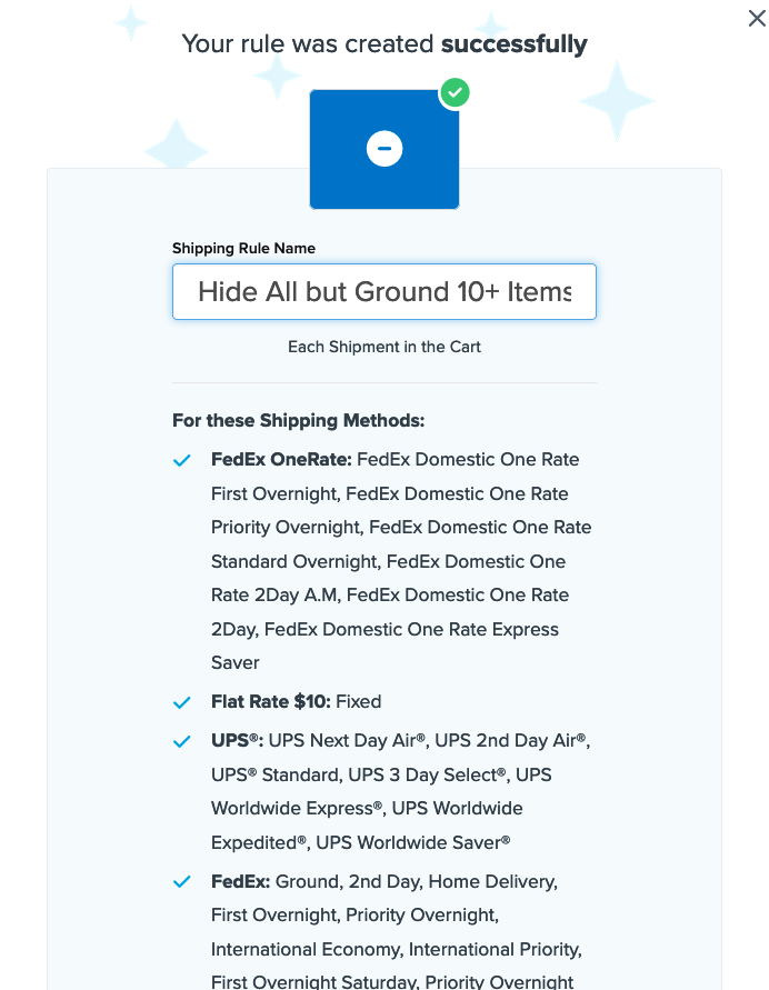Using shipping rules within ShipperHQ, you can hide shipping methods based on specific criteria. This guide will show you how to create a rule where only UPS Ground is displayed when a cart contains more than 10 products.