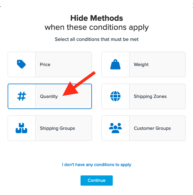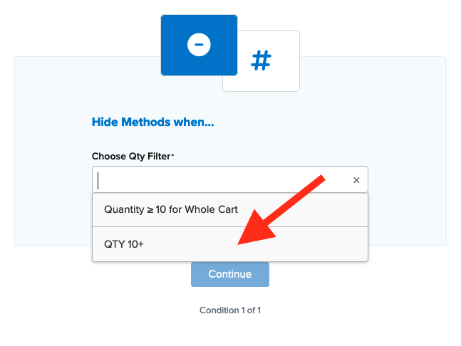 - Choose all shipping methods to hide, leaving only UPS Ground unselected when the quantity exceeds 10 items.