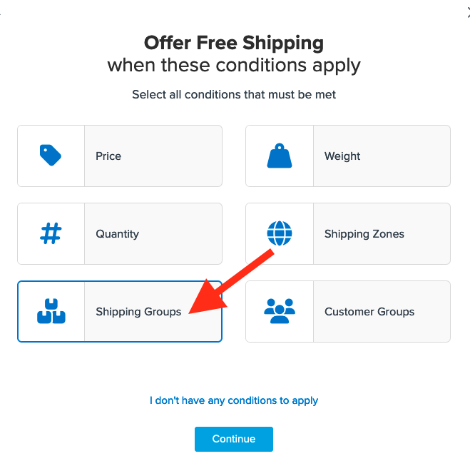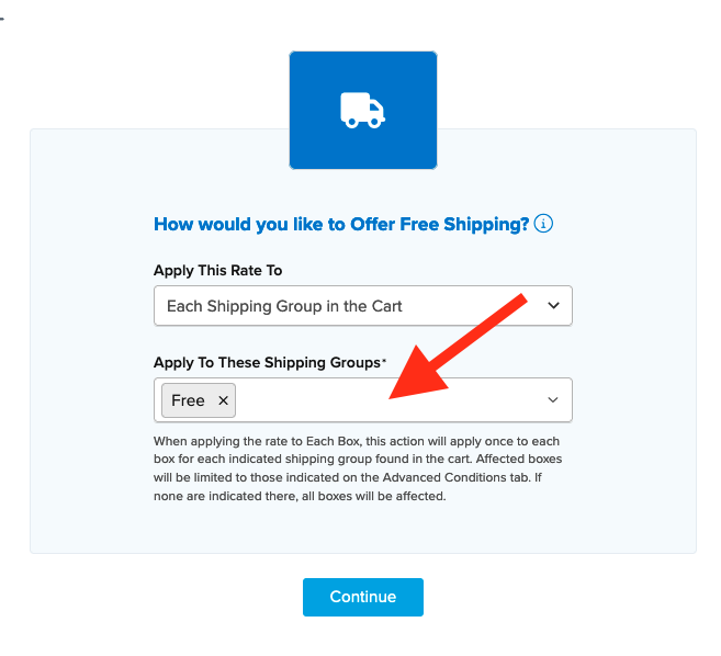 - Select the shipping group(s) you want to use for offering free shipping. We'll use Free.