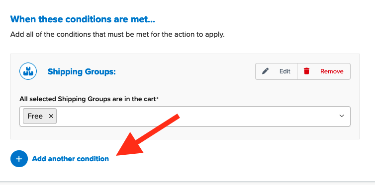 - Select Shipping Groups for the condition required for the rule to apply.