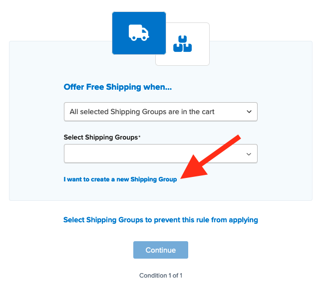If you have already created the shipping group for this rule, you can also select it to be applied on this screen.