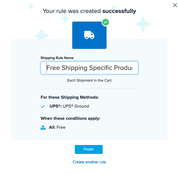 - Once you've applied your shipping group and continued, a summary of the shipping rule will display. Add a title for the new rule to easily identify it in the shipping rules list and during testing.