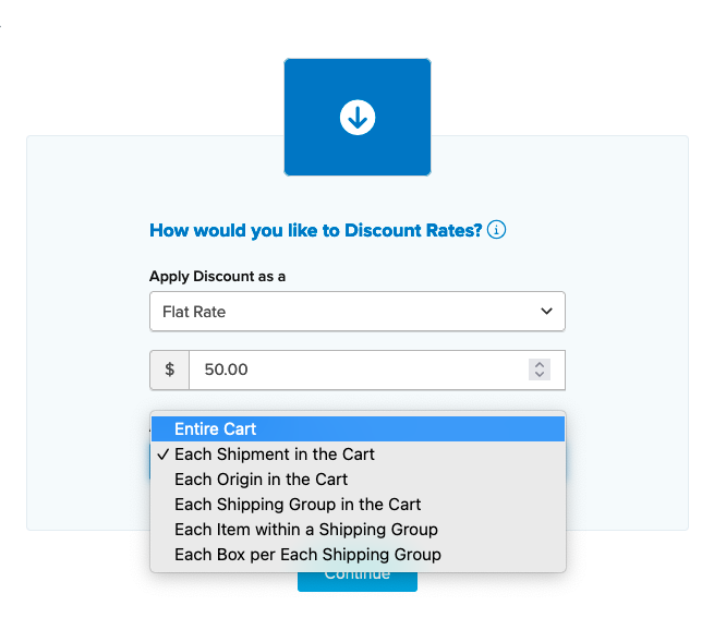 - Apply the discount as a flat rate or a percentage. We'll use a flat rate of $50 for this example.