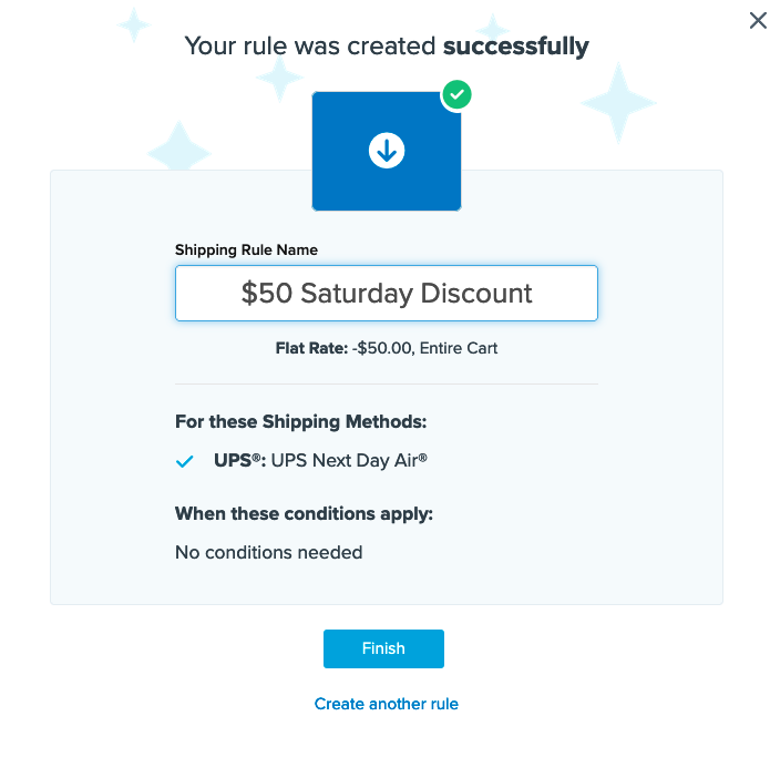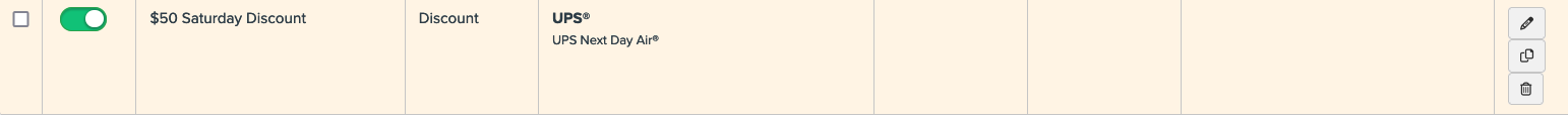 Once this rule is set for Saturday delivery, a $50 discount will apply to the shipping fee for the selected method on that day.