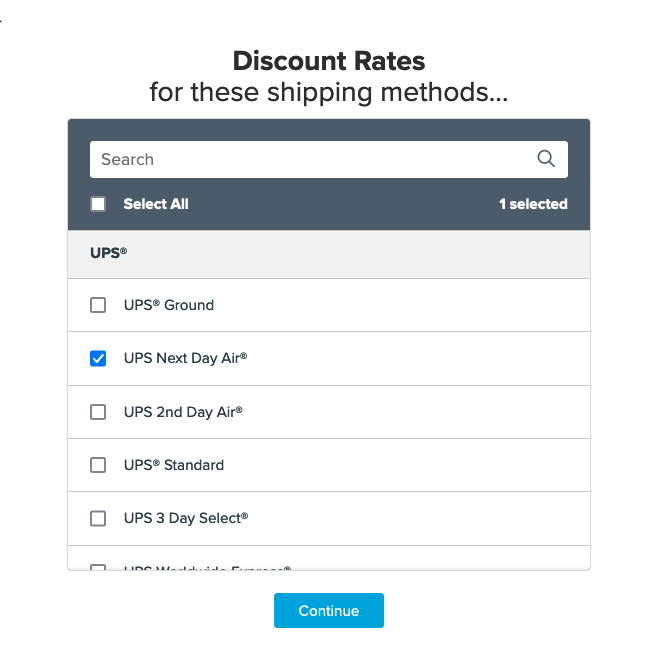 These steps apply a discount rule for a specific delivery day. We'll use UPS Next Day Air with a discount of $50 for delivery on Saturday.