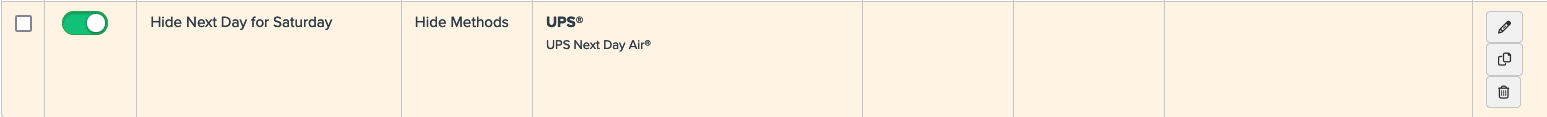 In this example, we'll hide UPS Next Day Air for delivery on Saturday.