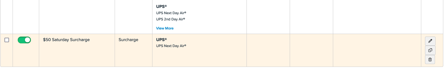 Follow these steps to set up a surcharge rule for a specific delivery day. We'll use UPS Next Day Air with a surcharge of $50 for delivery on Saturday.