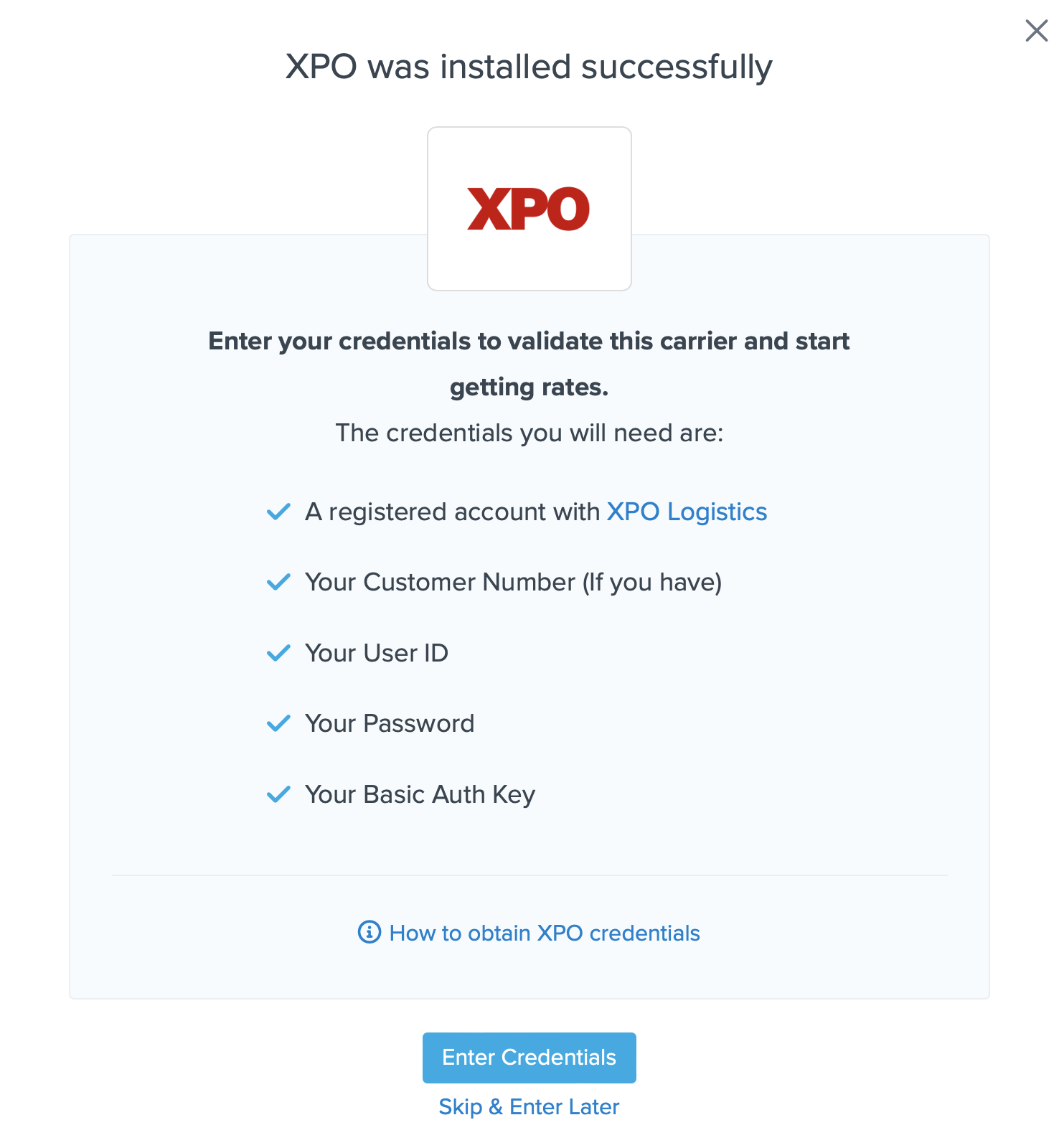 Once you have your credentials, follow these steps to set up XPO Logistics in ShipperHQ.