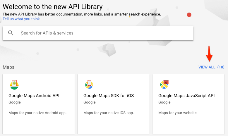 - Under the APIs heading, click "View All" to navigate to the API overview page.