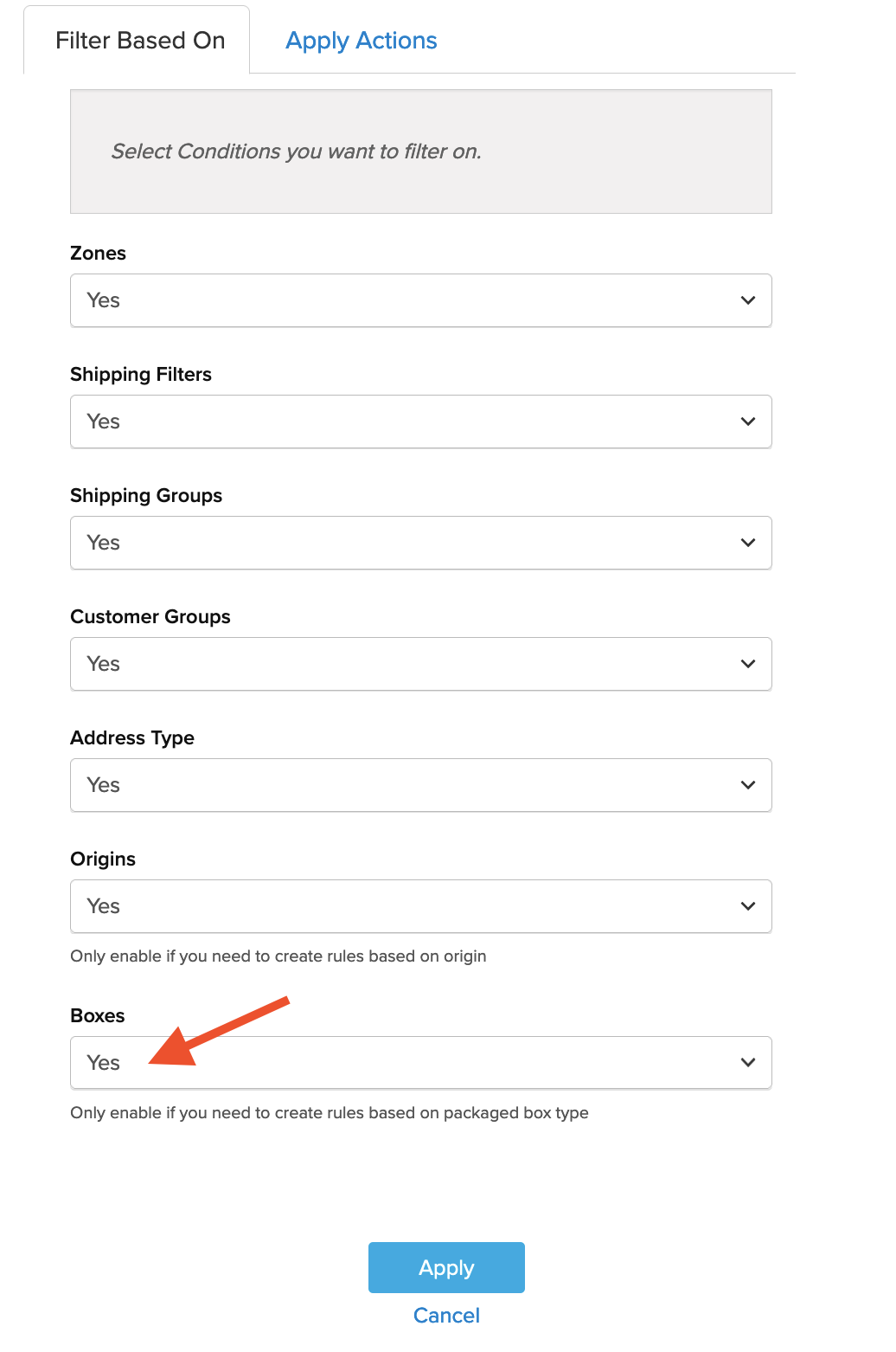 - Under the "Filter Based On" tab, set the Boxes dropdown to "Yes."