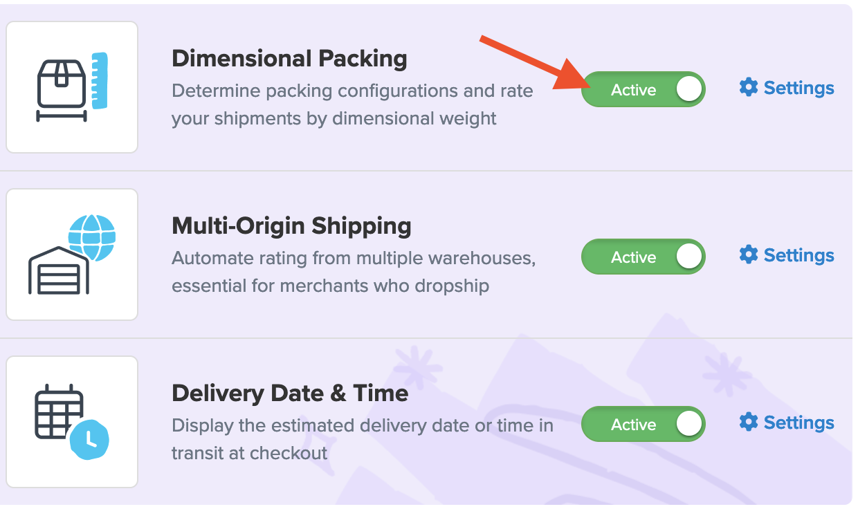- Ensure Dimensional Packing is enabled by navigating to the "Advanced Features" tab in the left-hand menu.
