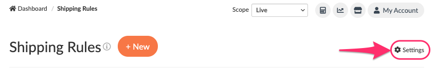- In the upper right corner, find and click the Settings link to access advanced shipping rules options.