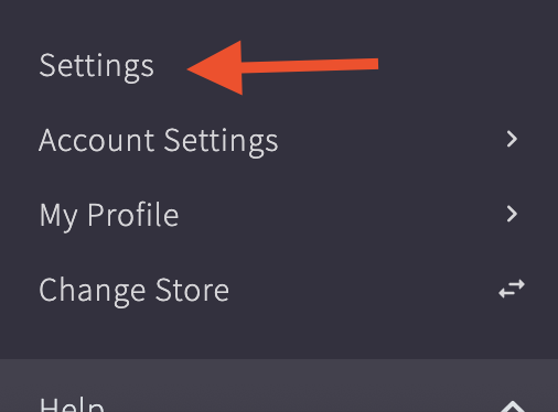 - In your BigCommerce Dashboard, click "settings" from the left menu (not “account settings”).