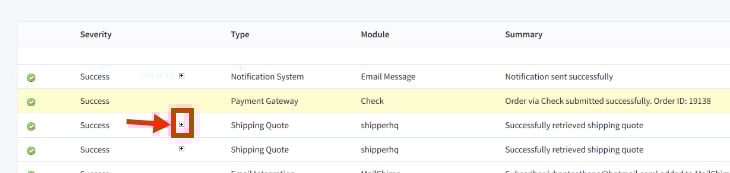 - Click the + sign to expand a request and see details for each shipping quote from ShipperHQ.