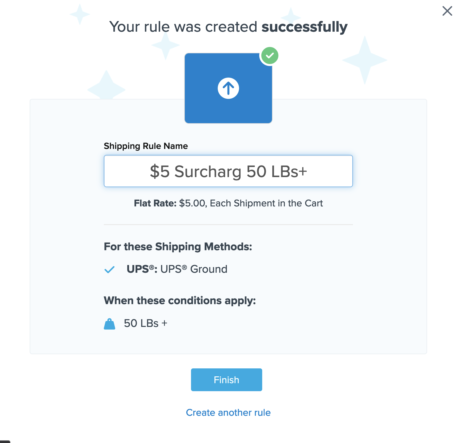 A common scenario for ShipperHQ merchants is to use shipping rules to apply an extra fee based on the order's weight. For instance, if a cart weighs more than 50 lbs, a merchant might want to collect an additional surcharge. This guide will show you how to apply a surcharge of $5.00 on UPS Ground for a cart weight over 50 lbs.