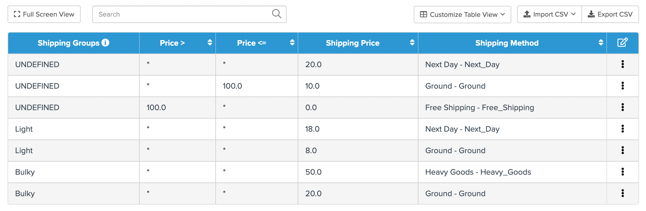 Note: Products not assigned to a shipping group may appear as "UNDEFINED" in the Table Rates configuration. This is normal.