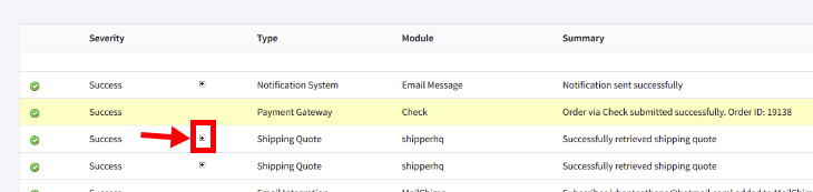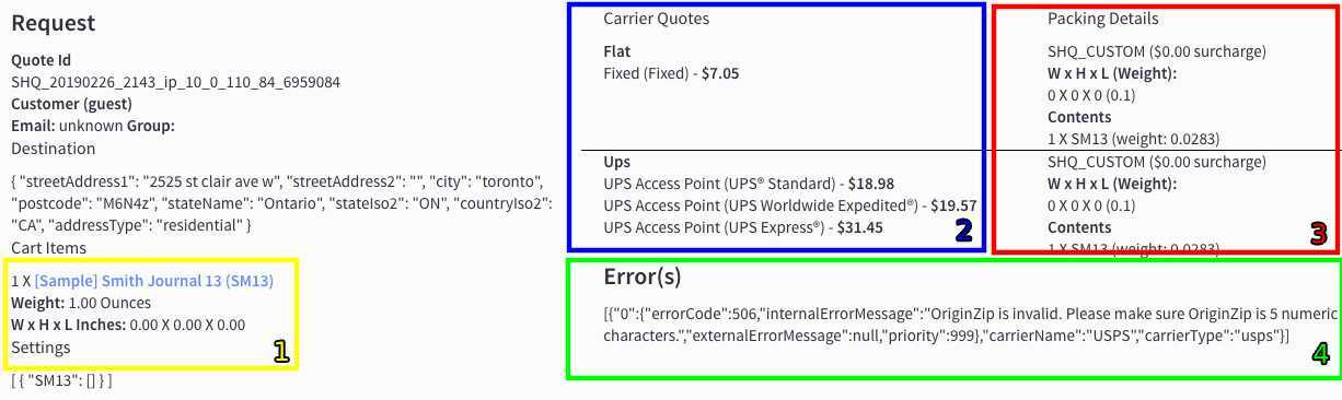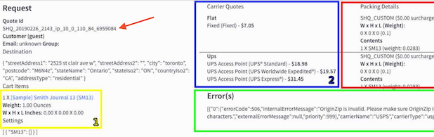 - Expand these requests to view details for each shipping quote provided by ShipperHQ.