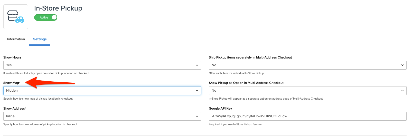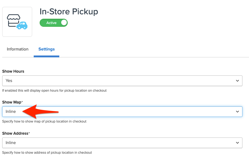 To show a map for UPS Access Point options, set the Show Map feature to "Inline" or "Popup."