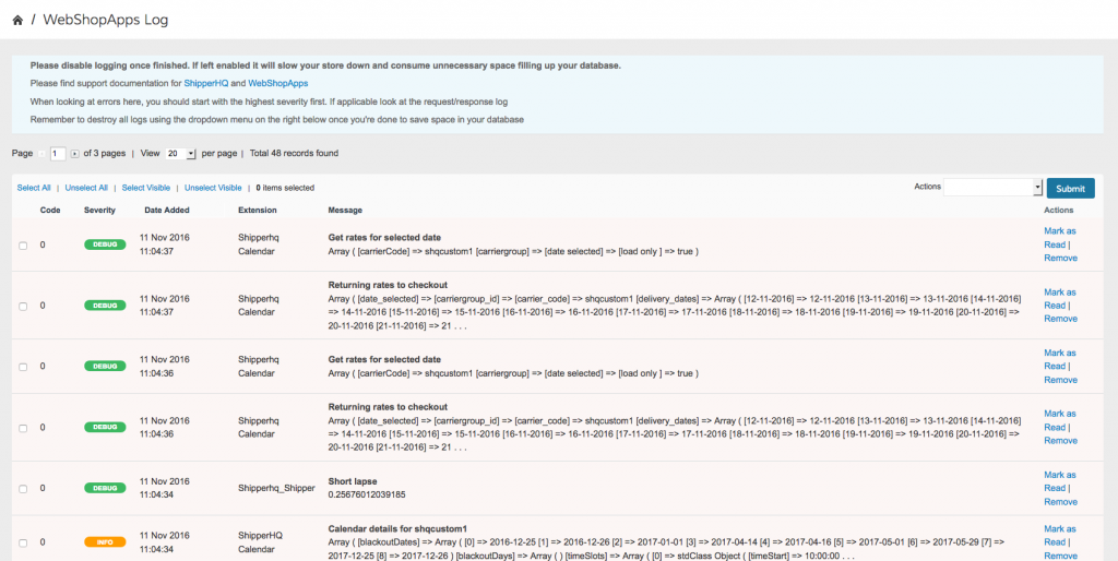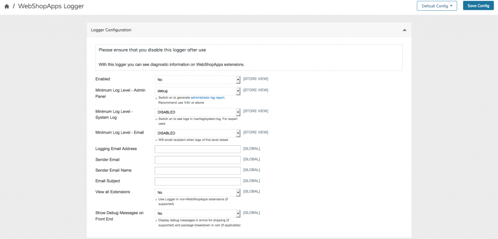 - Once done, remember to disable the WebShopApps logger to avoid slowing down your shipping rates