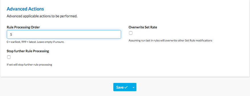 - Values range from 0 (processed first) to 999 (processed last). You can also use the 'Stop further Rule Processing' check to halt additional rule processing once a particular rule is applied.