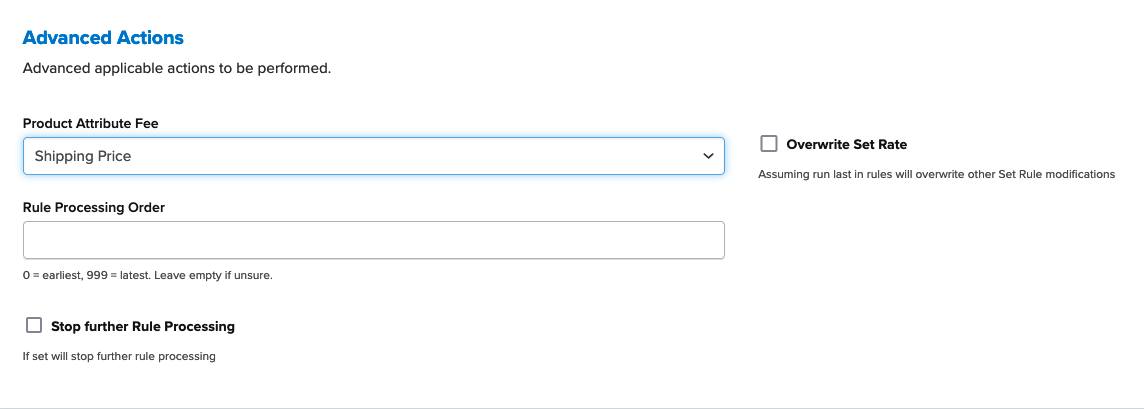 Select Shipping Price in the Product Attribute Fee dropdown and then Save the rule once more.