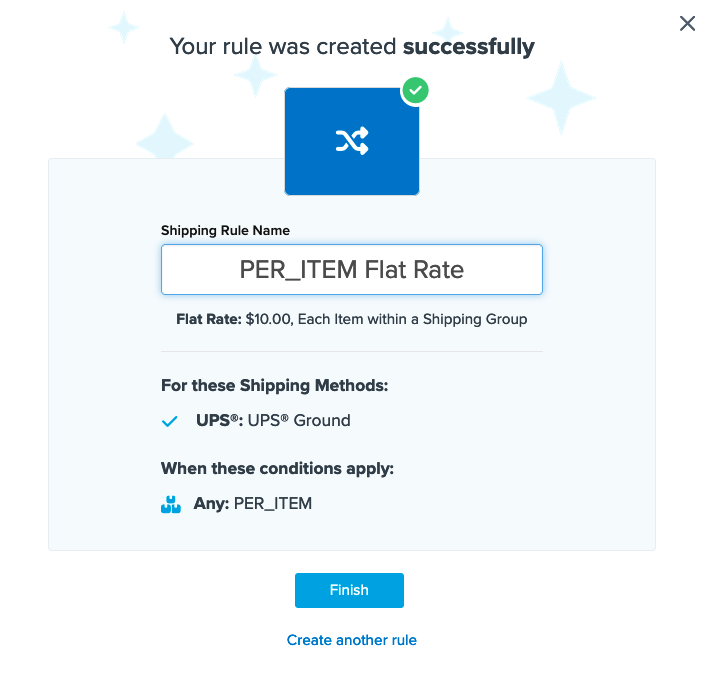 - After selecting the shipping groups and proceeding, a summary of the shipping rule will be displayed.