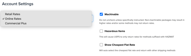 Offers discounts, especially for Priority Mail Flat Rate boxes. Comparable to USPS e-reseller discounts. Select "Online Rates" in the Rate Type field on your USPS carrier in ShipperHQ. Adjust with Shipping Rules as needed. - Commercial Base Pricing (CBP)