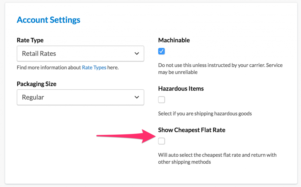 Enable this setting to only display the cheapest rates among Small, Medium, and Large Flat Rate methods. This requires activation of the Dimensional Shipping feature.