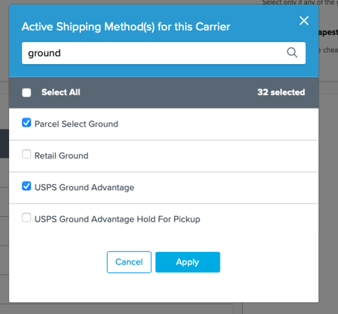 - Use the Search Carriers option to find USPS or scroll through the list of available carriers.