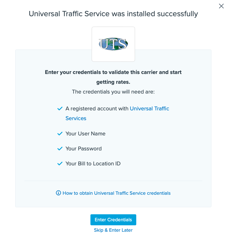 - Your Universal Traffic Service LTL Freight carrier is now enabled and ready for configuration. ✅