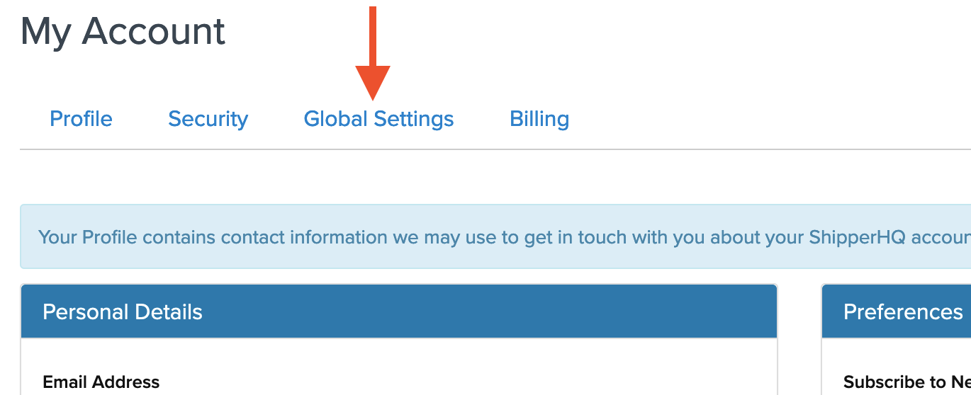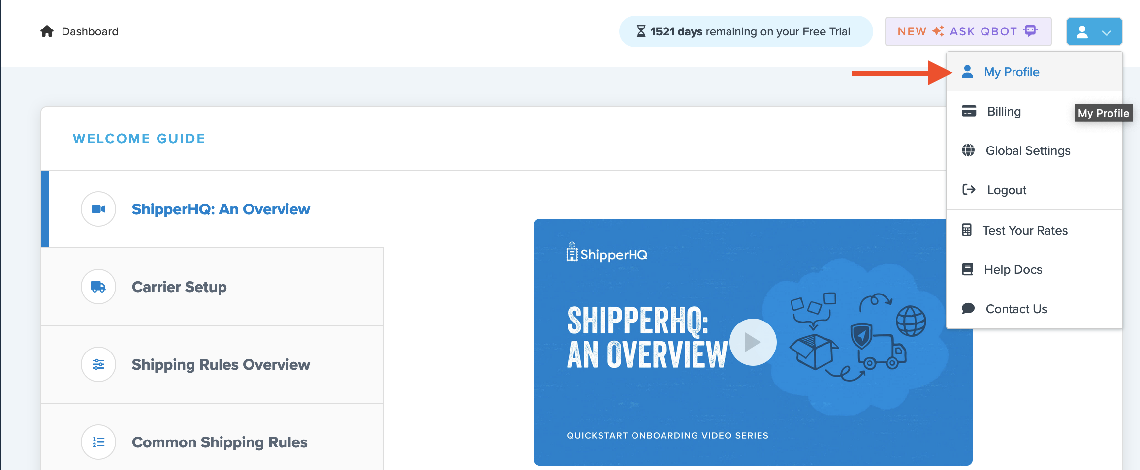 - From your ShipperHQ Dashboard, navigate to My Profile using the link in the upper right.